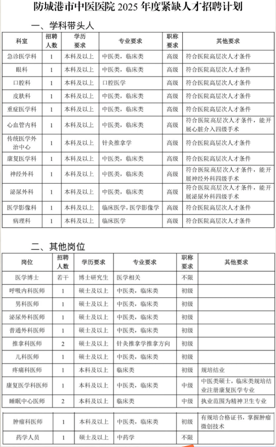 原文標題:2025年度防城港市中醫(yī)醫(yī)院緊缺人才招聘簡章