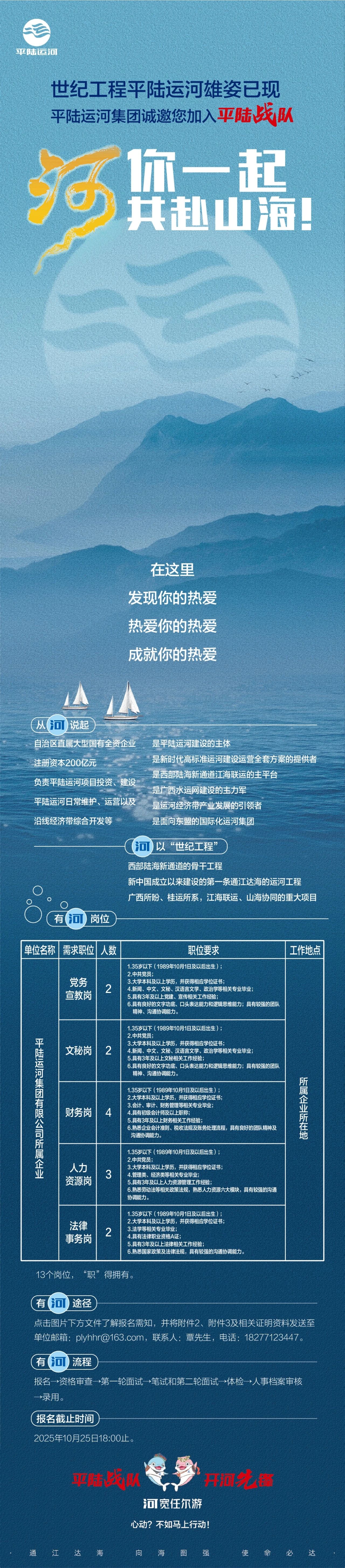 原文標(biāo)題:2025年廣西平陸運(yùn)河數(shù)智科技有限公司下半年社會(huì)公開(kāi)招聘公告