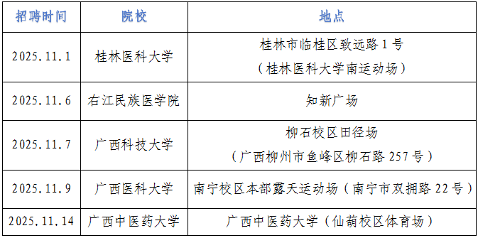 三、廣西各醫(yī)學(xué)院校雙選會舉辦時間、地點