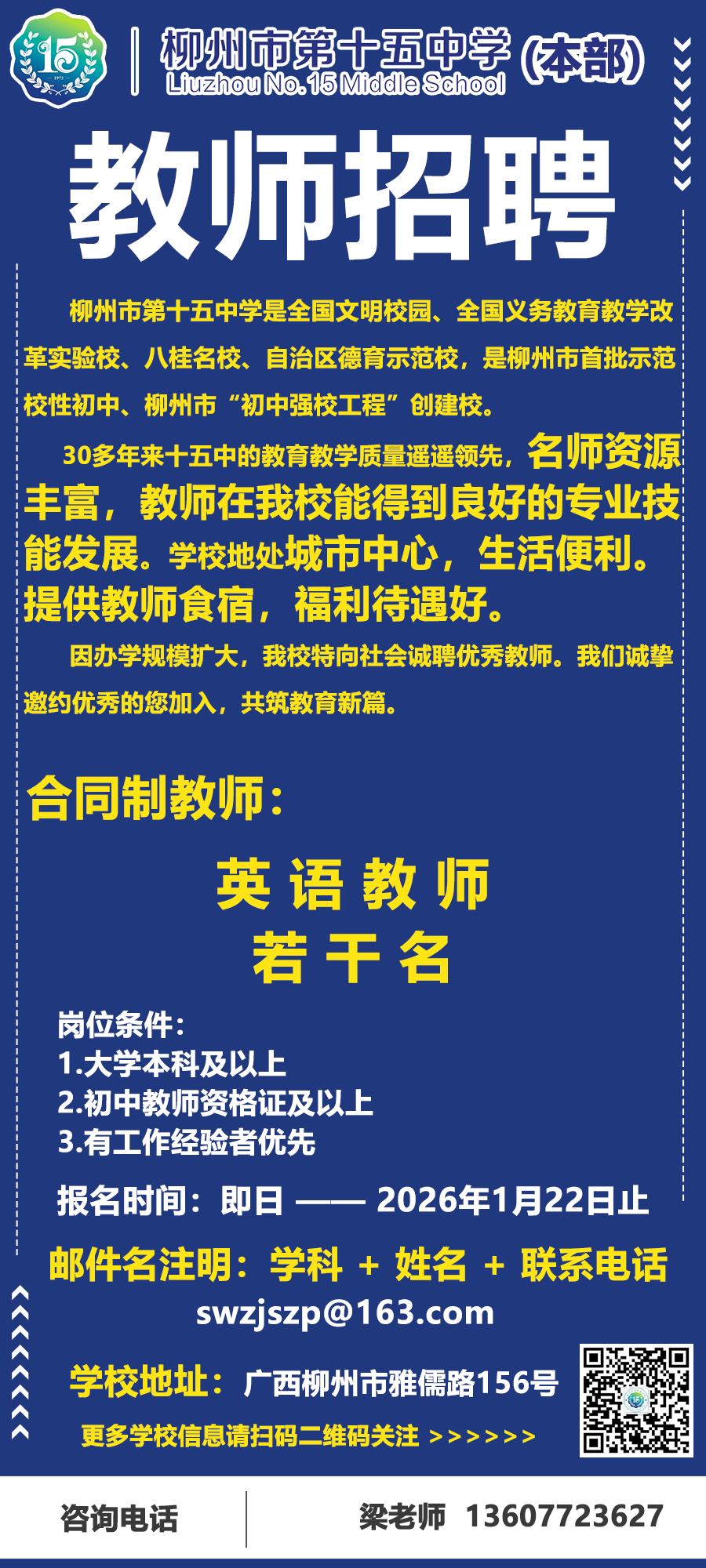 2026年柳州市第十五中學本部招聘公告