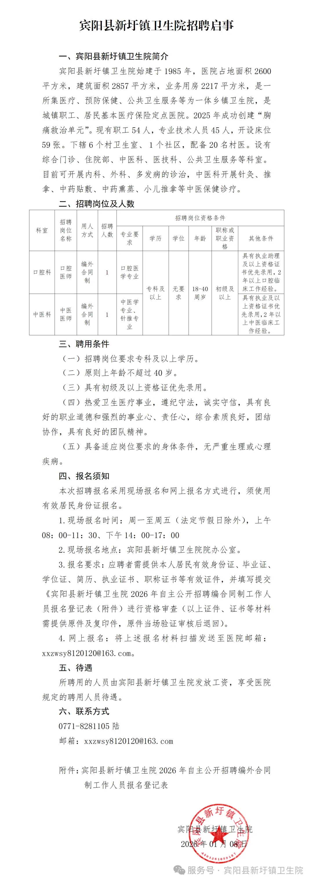 2026年賓陽縣新圩鎮(zhèn)衛(wèi)生院衛(wèi)生專業(yè)技術(shù)人員招聘簡(jiǎn)介