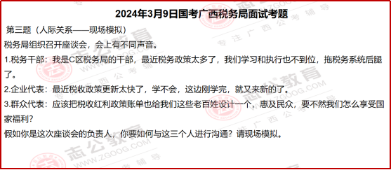 國考面試里,稅務(wù)系統(tǒng)的題目一直有個很明顯的特點,就是緊跟國家政策、貼近實際工作。尤其是2024年廣西稅務(wù)局的面試題,把這個特點體現(xiàn)得特別透徹。看這些題目,既能知道稅務(wù)工作實際需要什么樣的人、做什么樣的事,也能清楚面試到底要考察我們哪些核心能力。今天小志就帶大家了解一下,國考中稅務(wù)系統(tǒng)面試一些相關(guān)信息解讀: