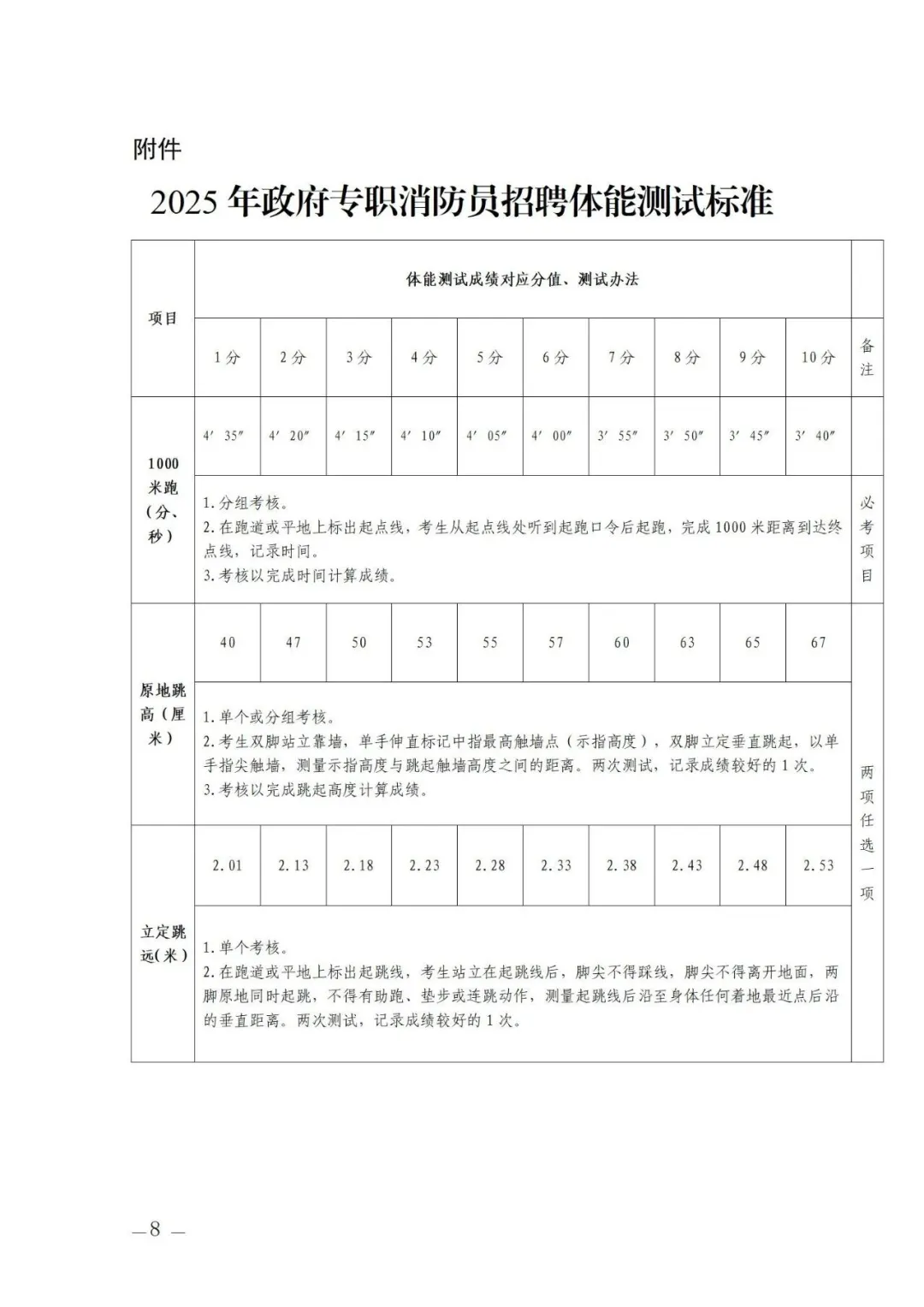注意事項(xiàng):應(yīng)聘人員須參加體能測(cè)試,并當(dāng)場(chǎng)簽訂《天等縣消防救援大隊(duì)政府專(zhuān)職消防員招聘體能和崗位適應(yīng)性測(cè)試招聘對(duì)象承諾書(shū)》,體能測(cè)試有兩項(xiàng)及兩項(xiàng)以上不得分的視為不合格(標(biāo)準(zhǔn)參照附件)。未按時(shí)參加或因身體原因無(wú)法測(cè)試者,視為自動(dòng)放棄。