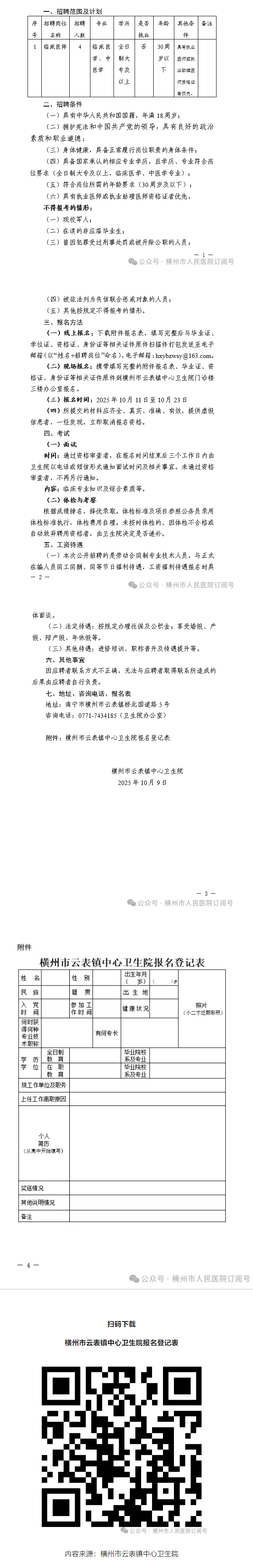 2025年橫州市云表鎮(zhèn)中心衛(wèi)生院公開(kāi)招聘編外衛(wèi)生專業(yè)技術(shù)人員的公告
