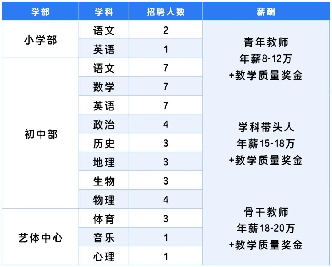 xsjjyc_hr@163.com郵件投遞:可將個人簡歷以“學(xué)科崗位+姓名”命名投遞郵箱。