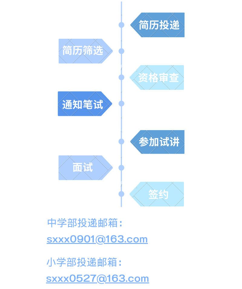 請(qǐng)將個(gè)人簡(jiǎn)歷(Word或PDF版本)、一張個(gè)人生活照以電子郵件附件形式發(fā)送至報(bào)名崗位對(duì)應(yīng)的郵箱(如有作品,請(qǐng)將作品集一起發(fā)送到報(bào)名郵箱),郵件主題和附件文件名請(qǐng)備注:應(yīng)聘學(xué)科+姓名+畢業(yè)學(xué)校。