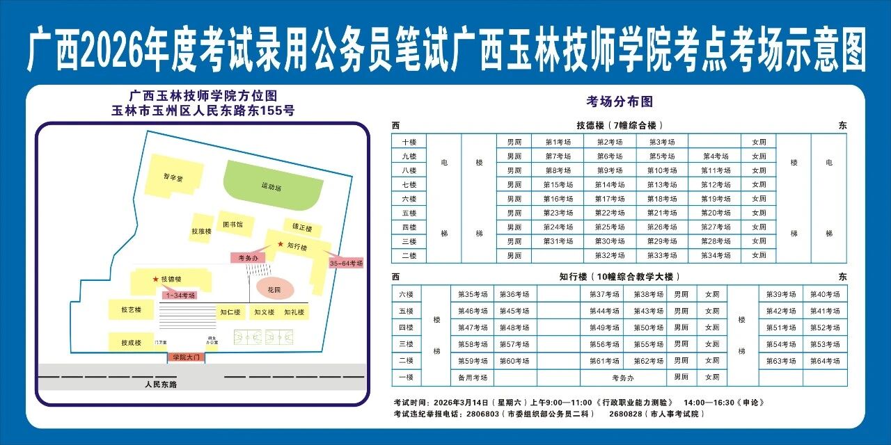 請(qǐng)及時(shí)登錄“廣西人事考試網(wǎng)”打印筆試準(zhǔn)考證并妥善保管,仔細(xì)查看準(zhǔn)考證上的考點(diǎn)信息。本次考試玉林市考區(qū)共設(shè)10個(gè)考點(diǎn),各考點(diǎn)名稱及地址如下: