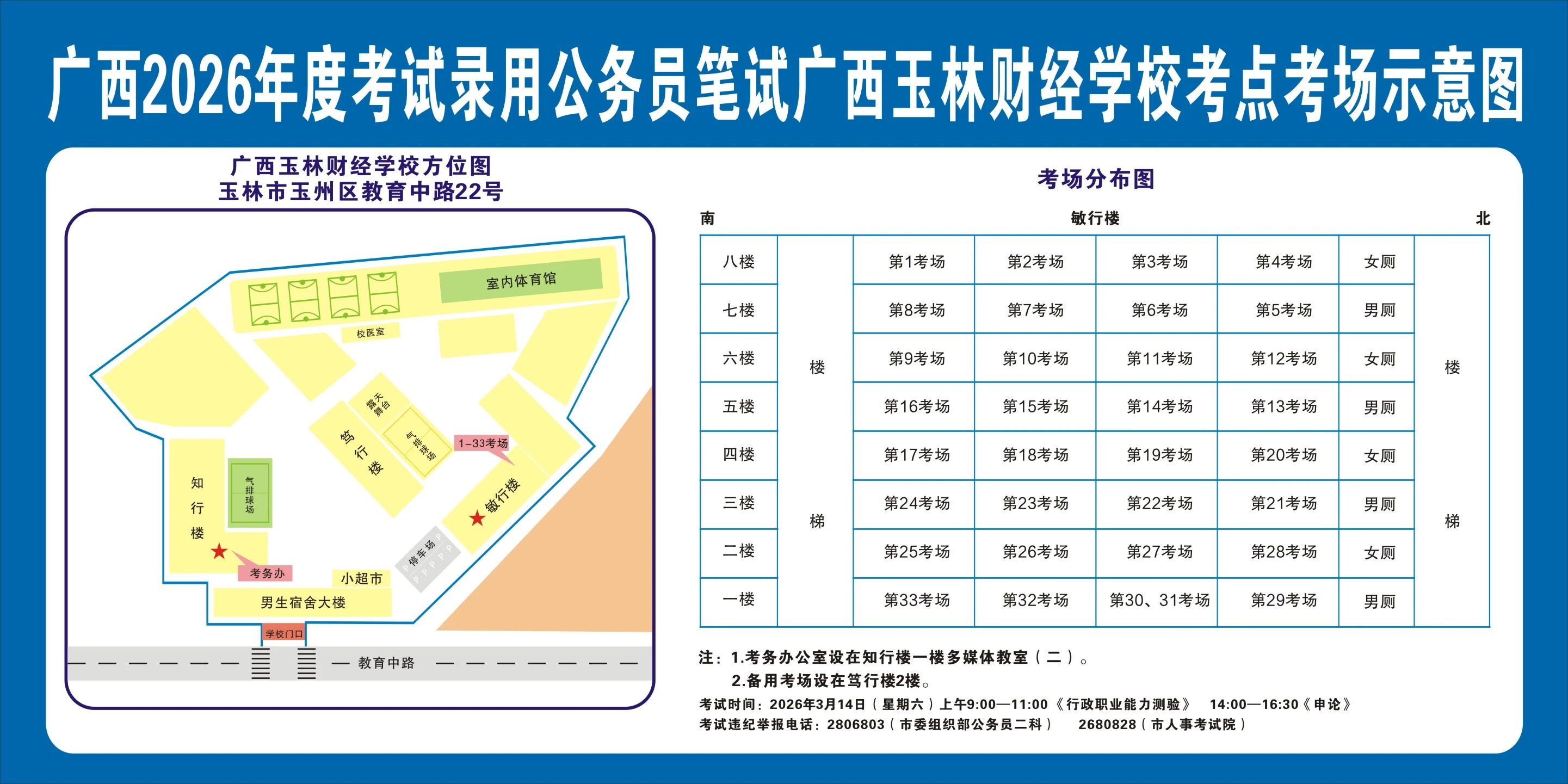 除考試當(dāng)天考生可以進(jìn)入考點(diǎn)外,考生不得提前進(jìn)入考點(diǎn)查看考場(chǎng)(學(xué)校將在大門處擺放考場(chǎng)分布示意圖),玉林考區(qū)10個(gè)考點(diǎn)的考場(chǎng)布置情況如下: